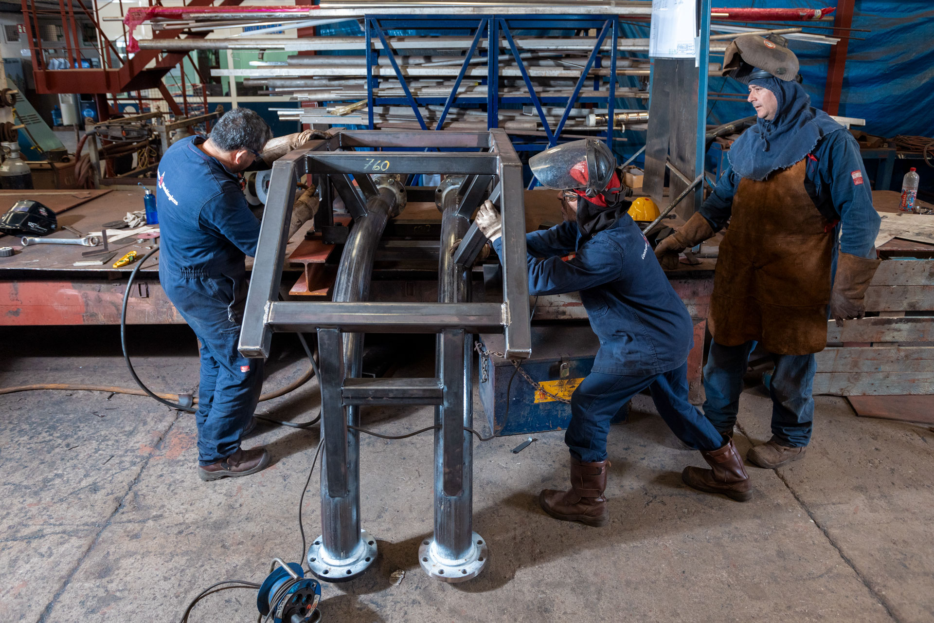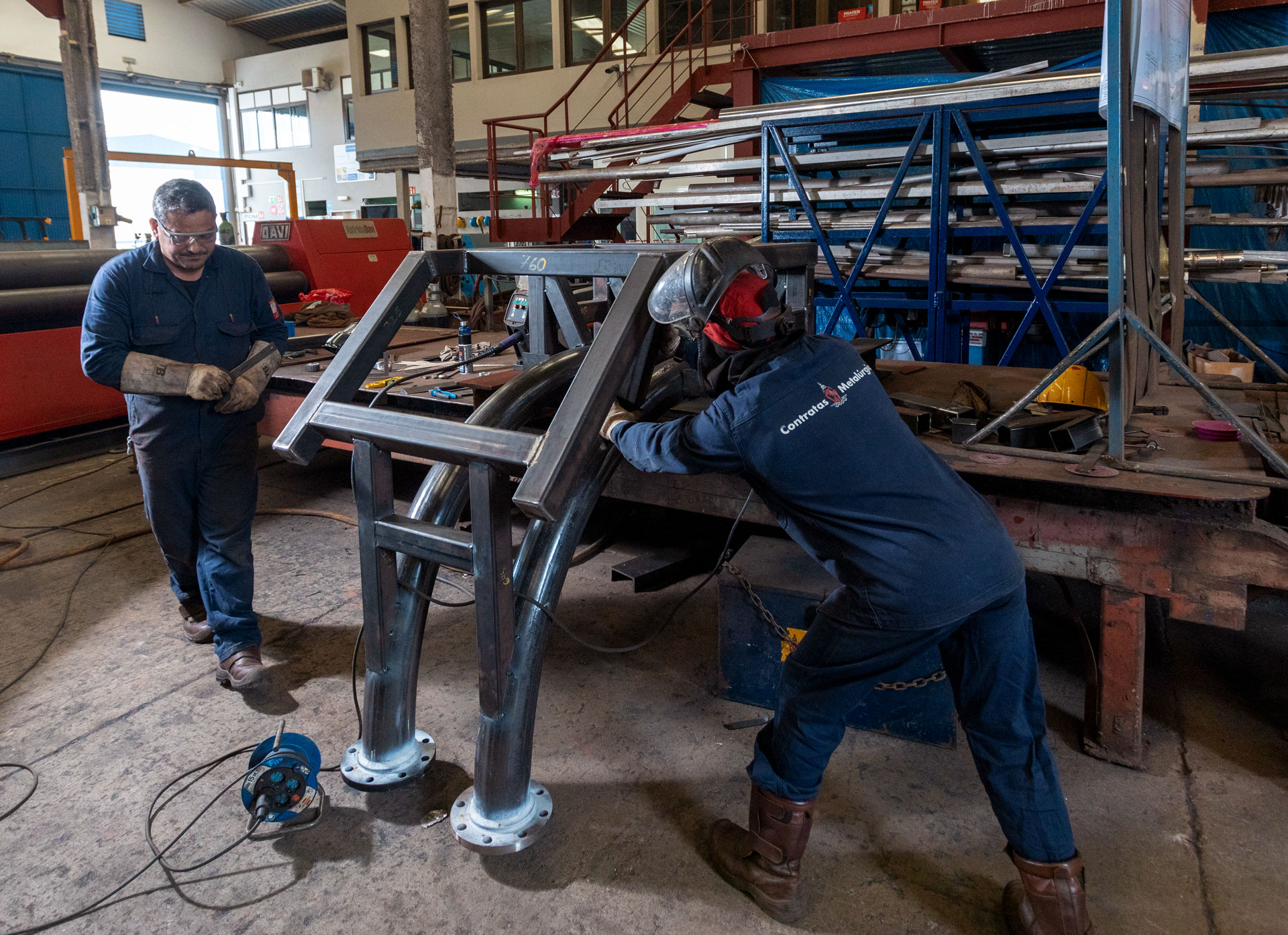 Fabricación bajo planos de una estructura para su montaje en plataforma petrolífera. Se trata de una estructura para mangueras, situada en el costado de la plataforma.
